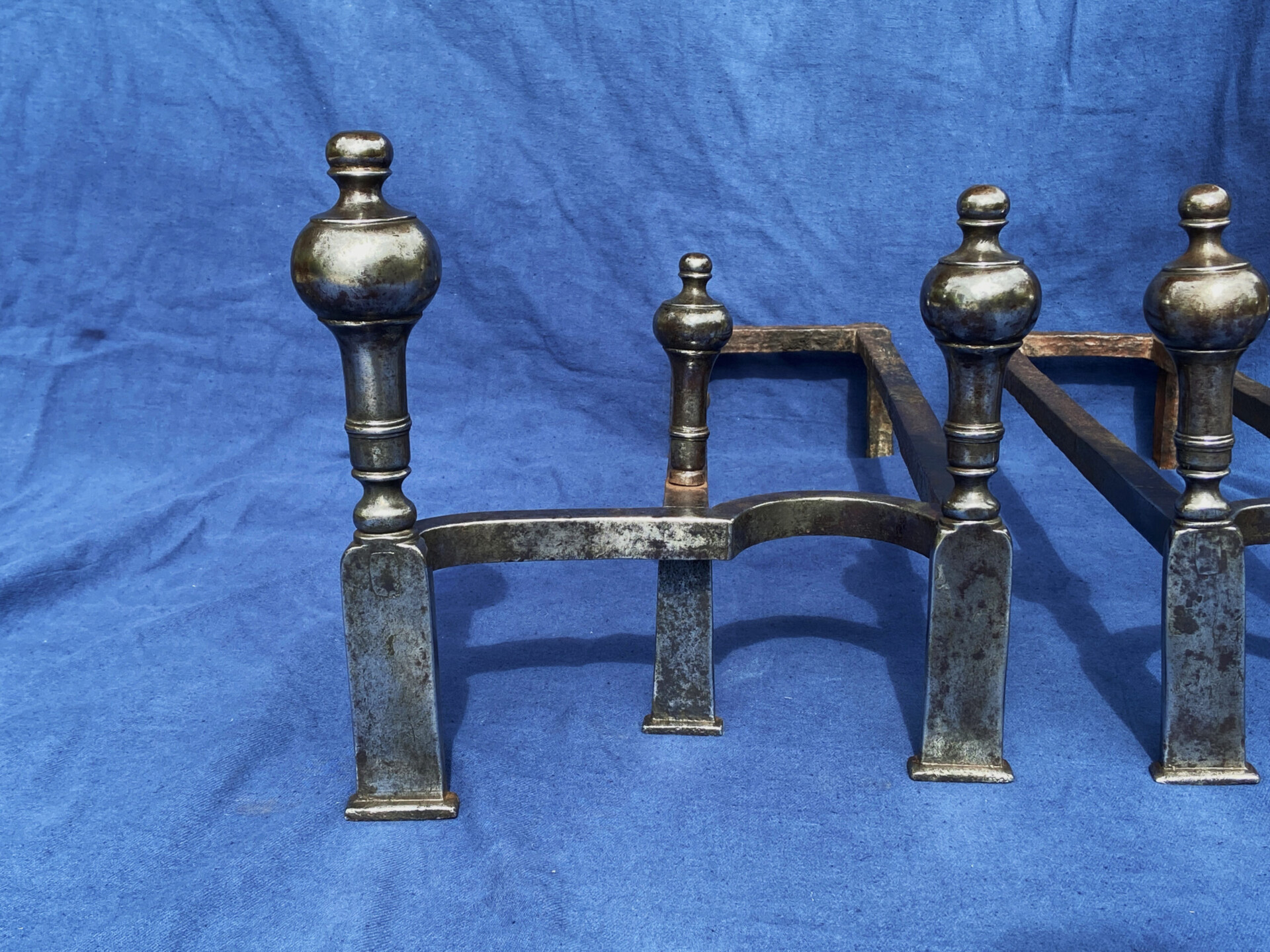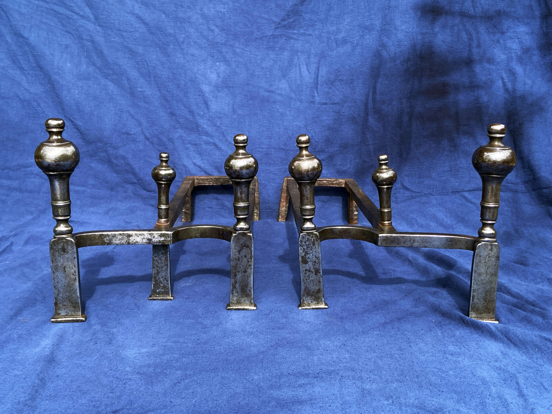 Fantastic 2nd half of the 18th century polished steel firedogs. The bright steel has been returned to a high-polish in keeping with how the pieces would have been.