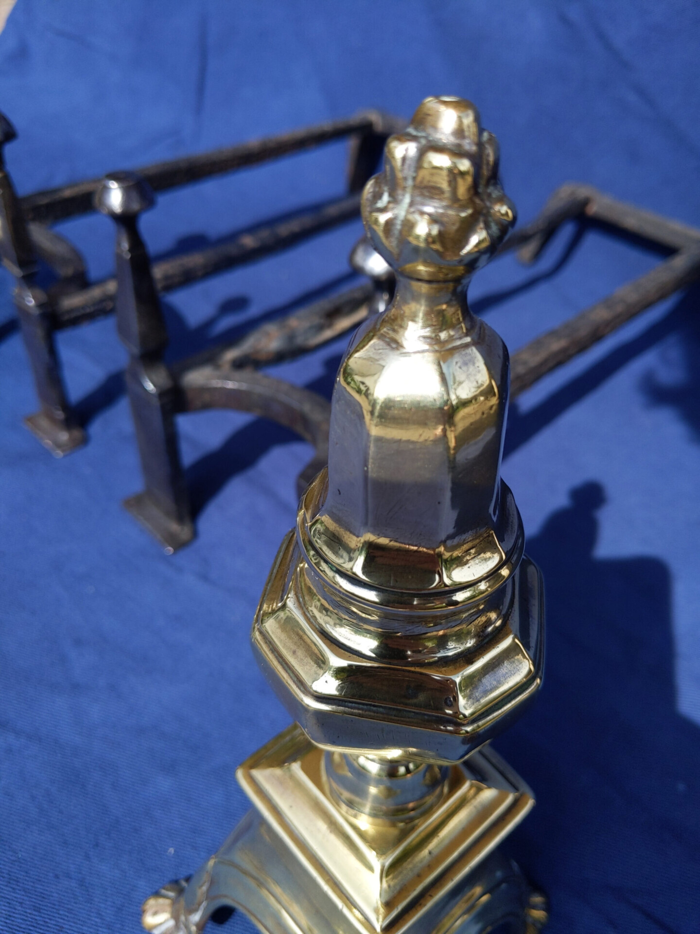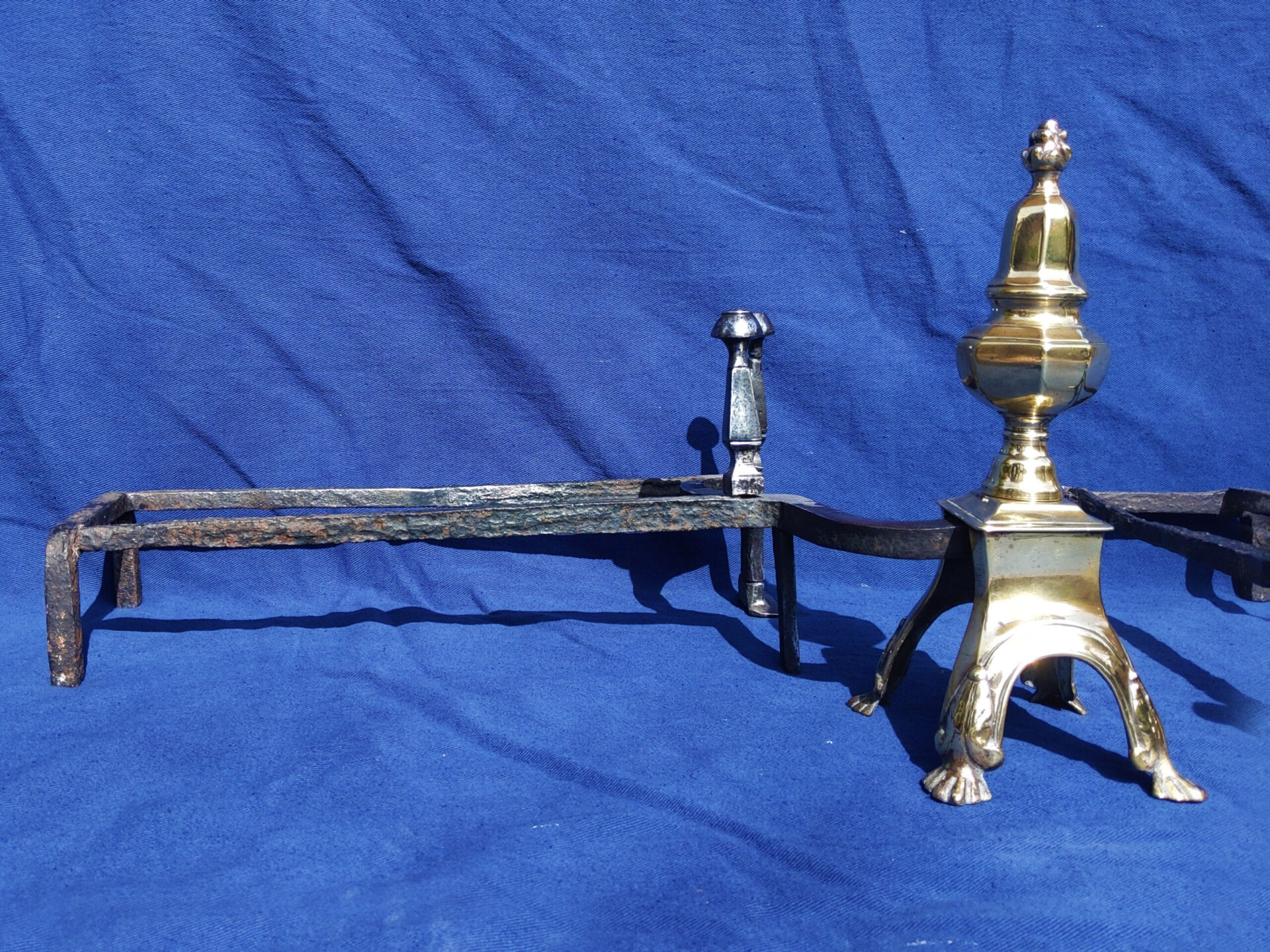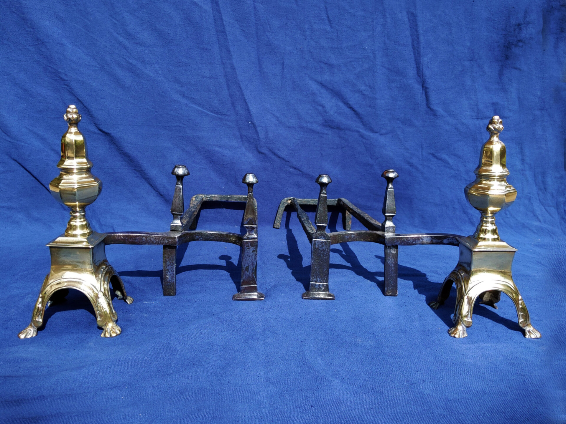 A pair of brass English 18th century firedogs.