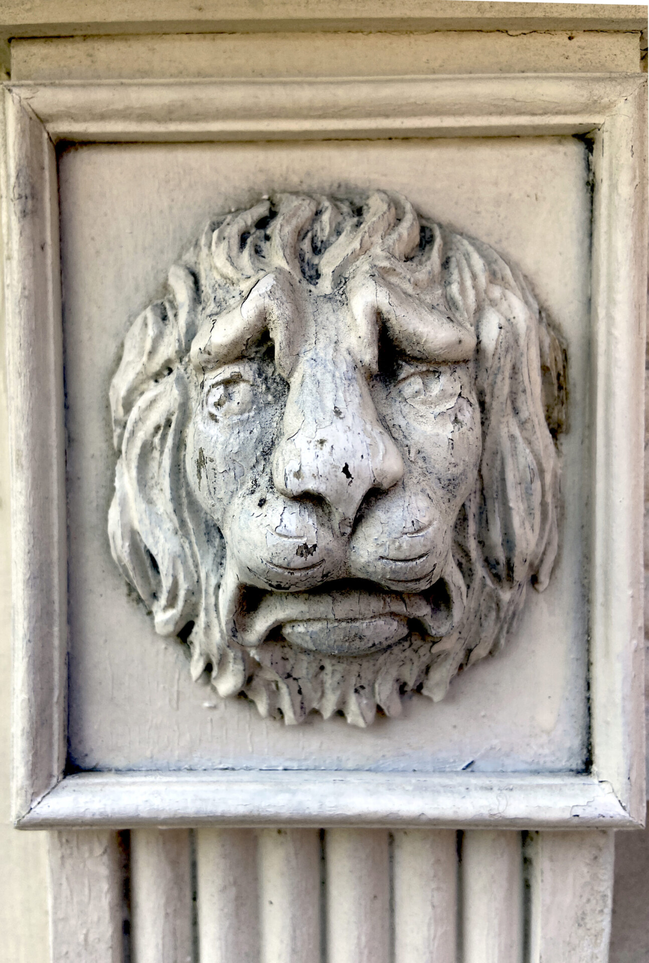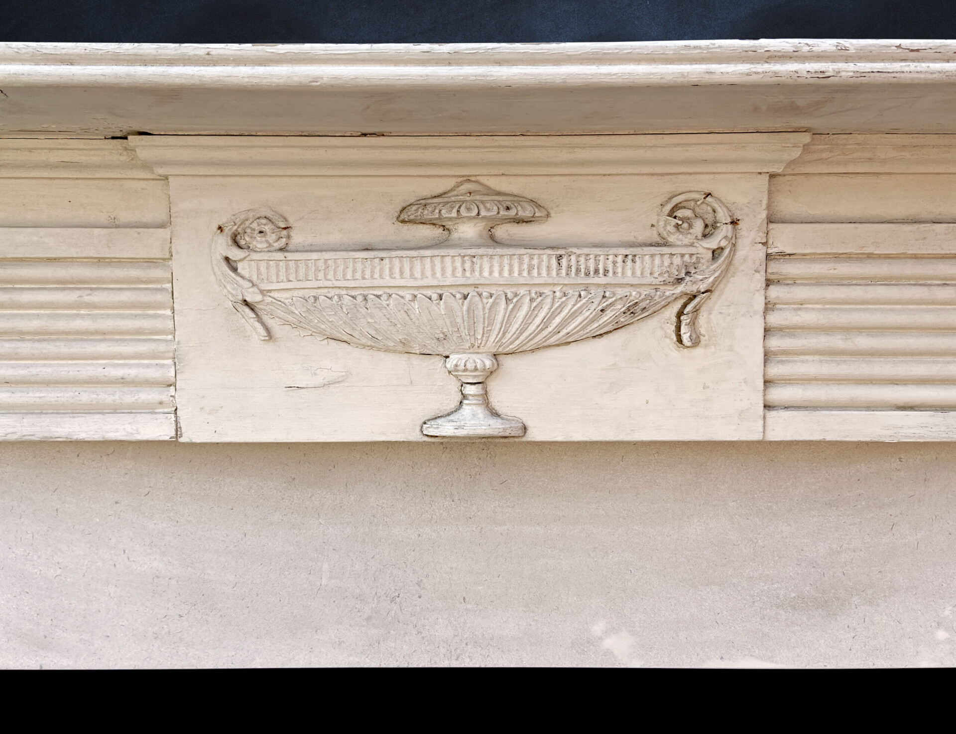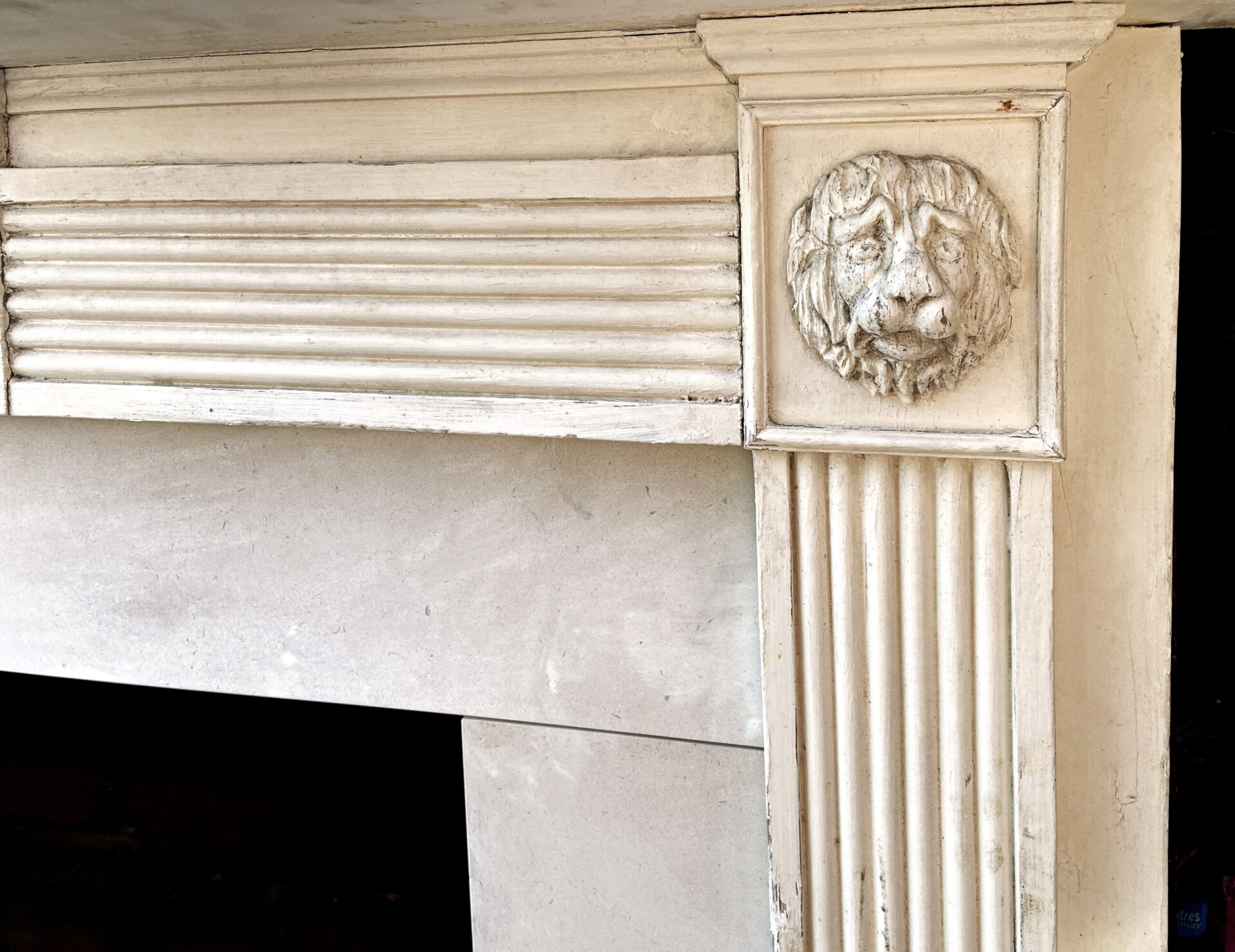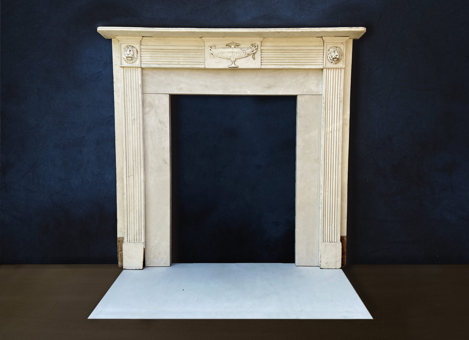 A Georgian timber Chimney-piece with evocative mouldings of lions and an urn.